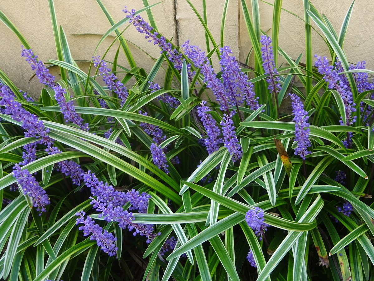 塀際にヤブランの花が